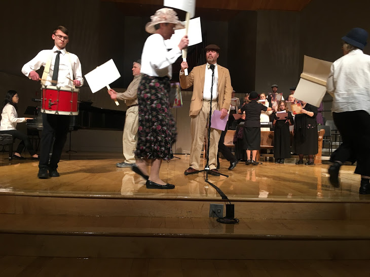 From first rehearsal to performance, “Songs of Conscience and Peace” was a work in progress with a triumphant finish. Speaking to members of the audience, people were deeply moved by this musical theater production. The scenes caught the various historical happenings of this era in a concise way, and Wendy’s script exhibited her thorough, conscientious study . The staging was well-thought out and flowed smoothly. I especially enjoyed Wendy’s creativity using two songs simultaneously. Wendy’s writing and directing showed her her intellect, experience, and ability to work with people. Her calm personality was a great help to the performers.
