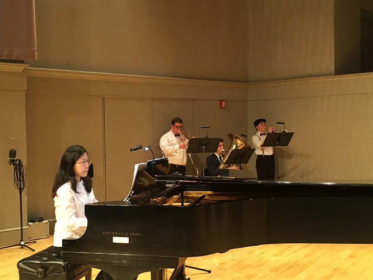 [Stage lights come up to dim as Daeun is playing Ragtime]